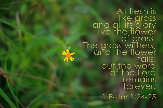 “For, “All people are like grass, and all their glory is like the flowers of the field; the grass withers and the flowers fall, but the word of the Lord endures forever.” And this is the word that was preached to you.” –1 Peter 1:24-25