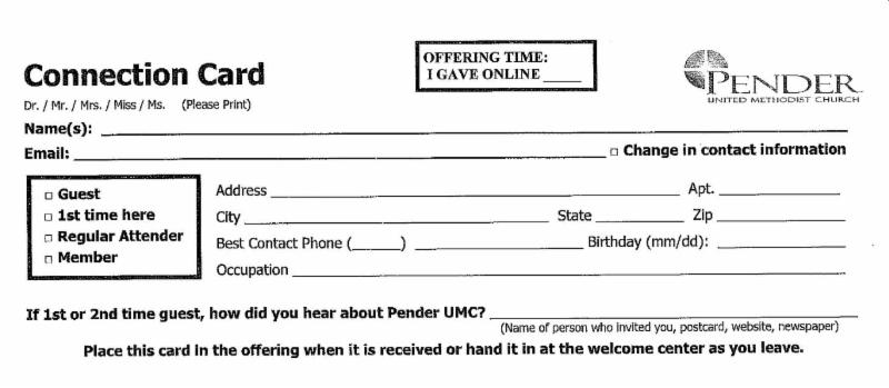- Gives you the opportunity to let us know your interests in our ministries of the Church and we will have a leader contact you.
