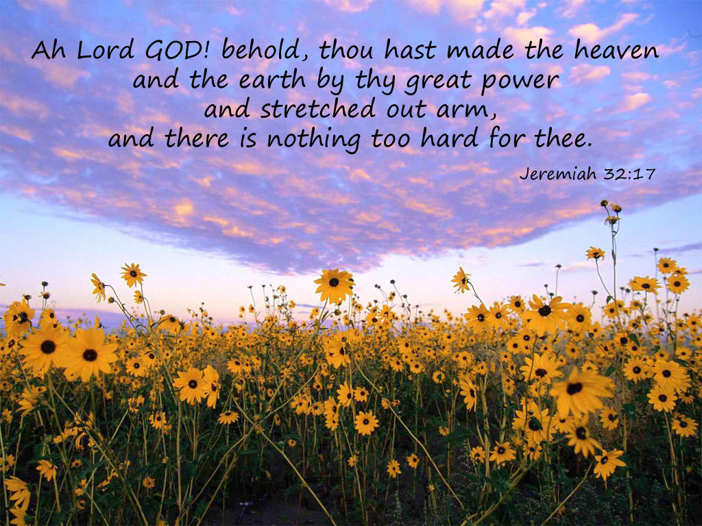““Ah, Sovereign LORD, you have made the heavens and the earth by your great power and outstretched arm. Nothing is too hard for you.” –Jeremiah 32:17