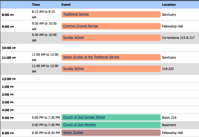 Wondering where to take your children on Sunday mornings? Below is a summary. More detailed information is available at the Welcome desk located in the main lobby and here.