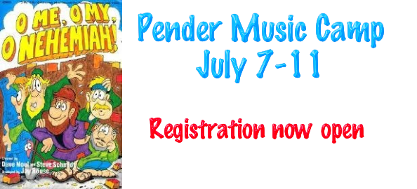 At Pender’s Music Camp, rising second through sixth graders sing in choir, play Orff instruments, ring handbells, experiment with rhythm in a percussion class, learn to read music, and make crafts. Older youth are always welcome to help out as teaching assistants.