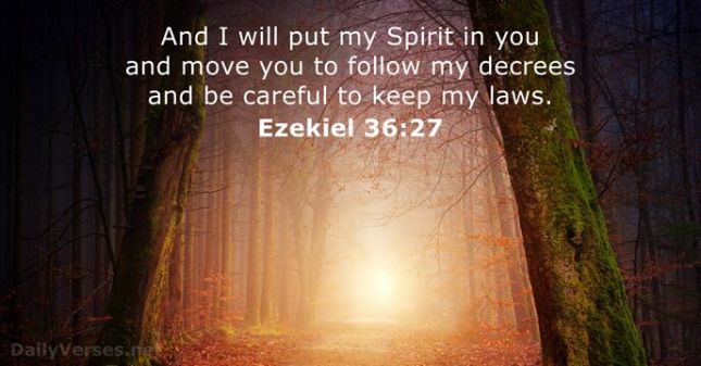And I will put my Spirit in you and move you to follow my decrees and be careful to keep my laws. ~Ezekiel 36:27